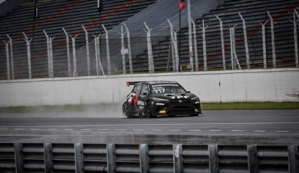 en el Circuito N°8 del autódromo «Oscar y Juan Gálvez», y con el Toyota Corolla Cross que le pertenece a Matías Rossi logró cumplir las 18 vueltas de la prueba sabatina con un manejo firme en una pista que presentó un desafío para él y los restantes participantes ante la falta de adherencia por la lluvia.