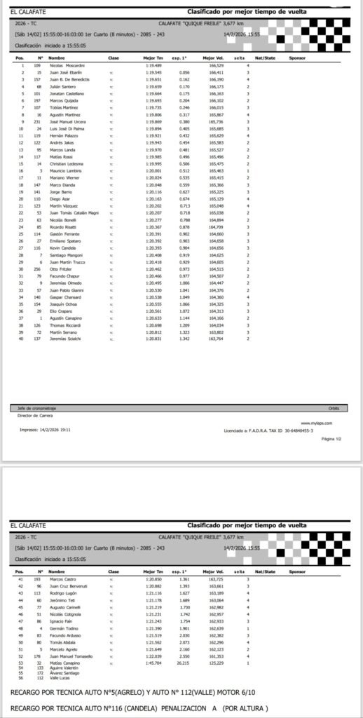 Nicolás Moscardini se quedó con la pole position y el récord del circuito en la primera fecha del Turismo Carretera en su debut. Le ganó la pulseada a Juan José Ebarlín y Juan Bautista De Benedictis, que completaron el top3 en El Calafate.