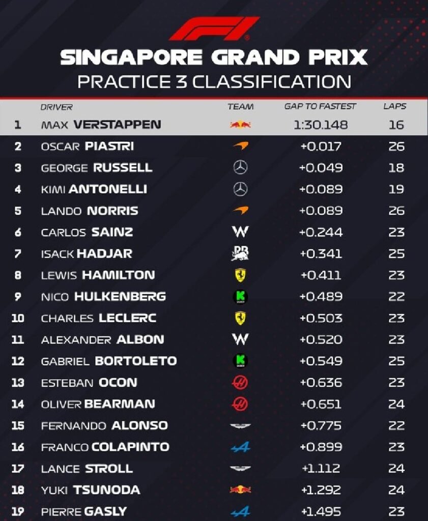 El piloto argentino dejó buenas sensaciones en el circuito de Marina Bay antes de afrontar la qualy con su A525. Su compañero Pierre Gasly culminó 19° y Max Verstappen fue el más rápido.