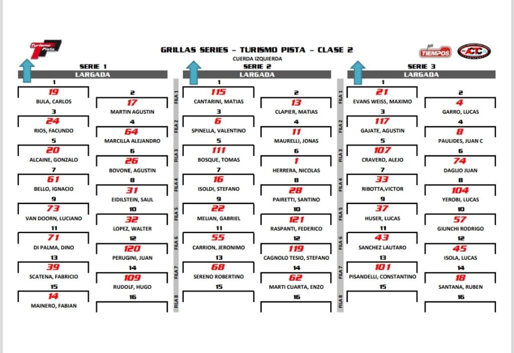 En el circuito pampeano, Carlos Bula marcó un registro de 1:29.564 y se quedó con la pole position de la Clase Dos, superando por 97 milésimas a su comprovinciano Matías Cantarini. En la tercera posición se ubicó Máximo Evans Weiss, a 404 milésimas del poleman.