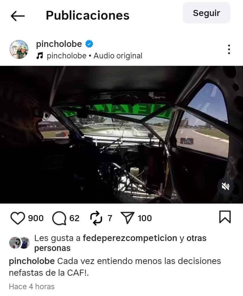 Jonatan Castellano publicó un picante posteo contra la CAF de la ACTC luego de la decisión que tomó la entidad de reubicar al sexto puesto en la final de la Clase 3 del TN APAT en Río Cuarto.