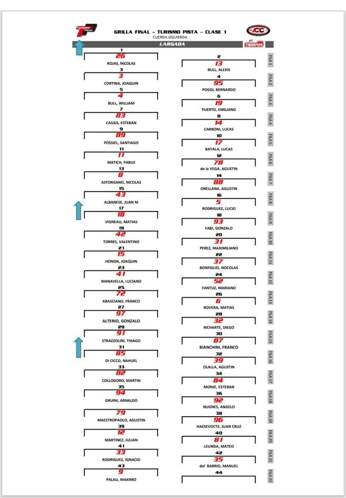 Cortina, que viene de ganar la 1ª fecha en La Plata, festejó en la 2ª serie luego de partir desde la 3ª posición con el auto atendido por su propio equipo, partirá desde la 2ª fila por haber ganado la batería más lenta, y su lado estará Bernardo Poggi (Fiat Uno).