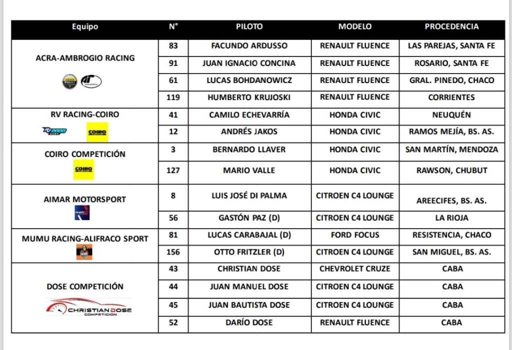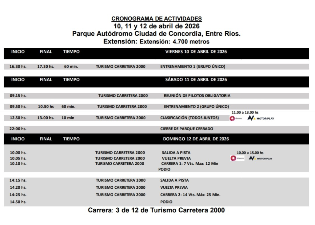 El campeonato de Turismo Carretera 2000 cumplirá este fin de semana en el Parque Autódromo Ciudad de Concordia, Entre Ríos su tercera fecha de la temporada junto al Turismo Pista.