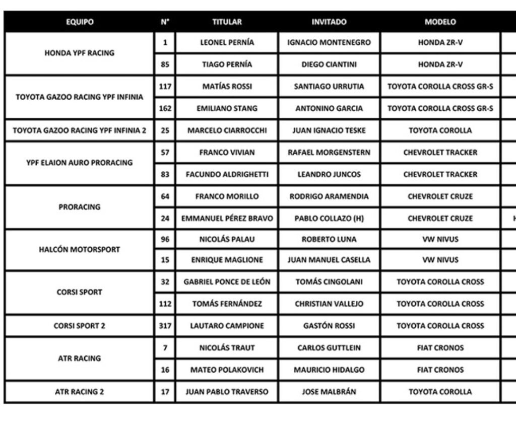 Como siempre en la misma se destacan los nombres de los invitados como el de Santiago Urrutia, piloto de la República Oriental del Uruguay, que hará binomio con el dos veces ganador de los 200 Km, Matías Rossi con el Toyota Corolla Cross GR-S #117 (Toyota Gazoo Racing YPF INFINIA). Su compañero de equipo, Emiliano Stang, correrá junto al tres veces ganador de esta histórica carrera, Antonino García, también Campeón Argentino de TC2000 Series 2016. Esta dupla buscará sumar fuerte en el Gálvez con el Toyota Corolla Cros GR-S #162.
