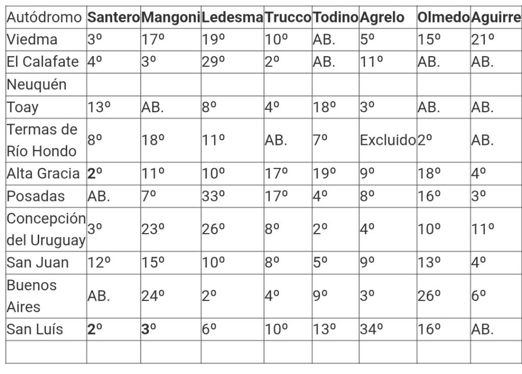 El de Balcarce hizo podio en El Calafate y en San Luís. En ambas terminó tercero. Abandonó una sola carrera que fue la de Toay.