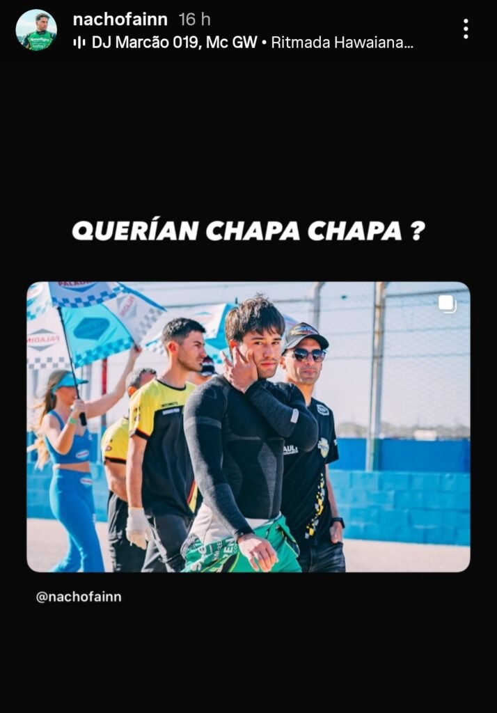 “¿Querían chapa-chapa? Estoy listo, Saturni Racing. Nos vemos en Rosario, en la Clase 3 del TN”, expresó con un breve comunicado en sus redes sociales el protagonista, quien además citó a Facundo Chapur, su compañero de equipo en Turismo Carretera, categoría a la cual llegó luego de un maratónico ascenso a nivel nacional desde el TC Pista Mouras, donde obtuvo el Campeonato en el año 2022. Dos años mas tarde sumó su segundo título nacional, en TC Pista Pick Up.