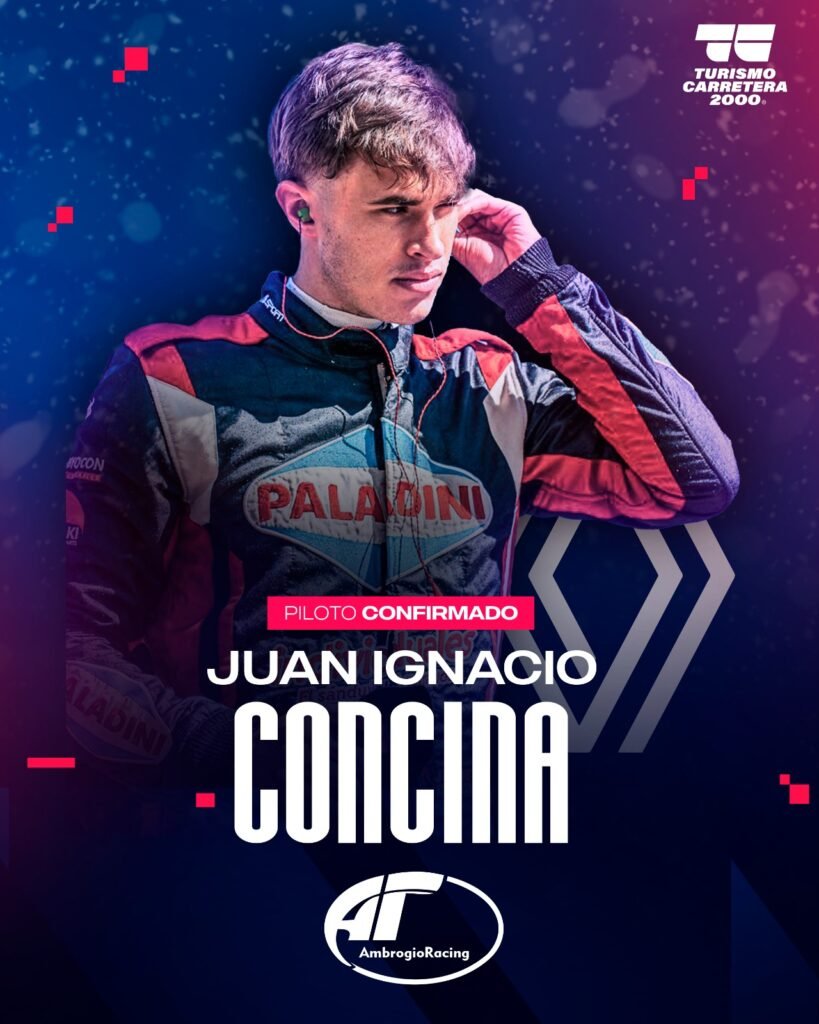 El equipo ACRA – Ambrogio Racing de Turismo Carretera 2000 anunció la incorporación de Juan Ignacio Concina a su estructura deportiva. El piloto, oriundo de Rosario, conducirá uno de los Renault para afrontar el 2do. campeonato de la especialidad, que se pone en marcha el 1 de marzo en el Autódromo Provincia de La Pampa ubicado en la localidad de Toay, junto al Turismo Pista.