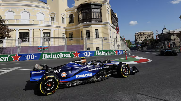 Franco Colapinto afrontará el Gran Premio de Azerbaiyán en un trazado urbano lleno de particularidades: curvas angostas, rectas larguísimas y velocidades que superan los 350 km/h.