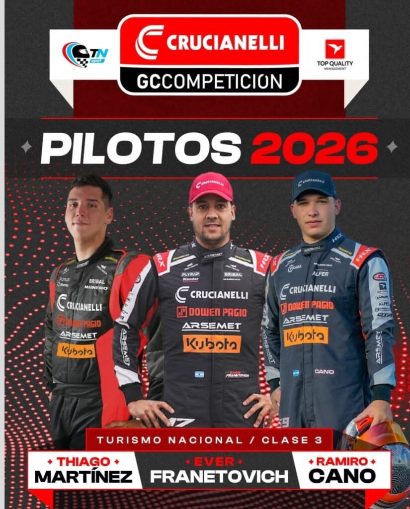 Crucianelli GC Competición anunció a los pilotos que formarán para el equipo dirigido por Gustavo Cano en el Campeonato 2026 de TN Clase 3, que comenzará entre los días 6, 7 y 8 de febrero en el Autódromo Ciudad de Paraná – Club de Volantes Entrerrianos.