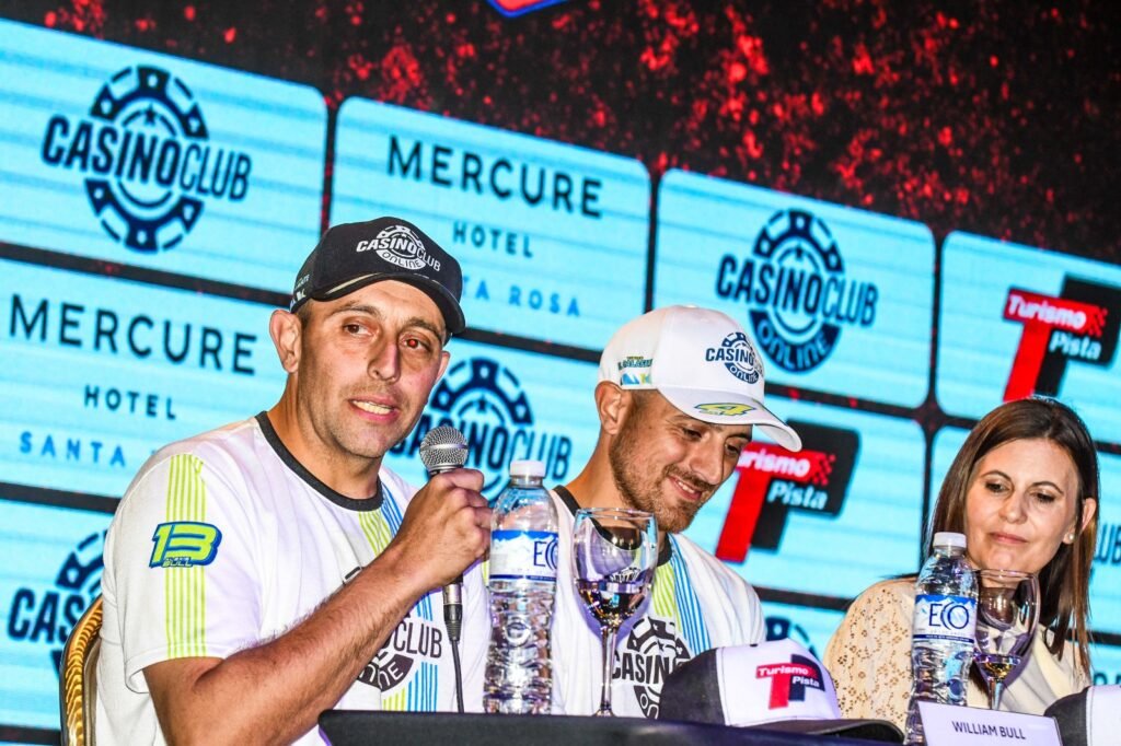 Posteriormente, en la sala del Casino Club Online de Santa Rosa, se desarrolló la conferencia de prensa, encabezada por el presidente del Turismo Pista, Ezequiel Bosio, acompañado por la gerente de Marketing de Casino Club Online, Gisela Ilcobich, y el gerente del Casino Club sede Santa Rosa, Diego Quiroga.