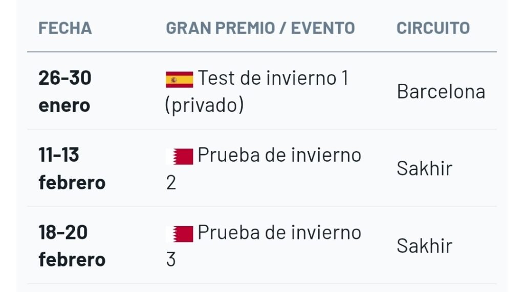 Pruebas de pretemporada 2026