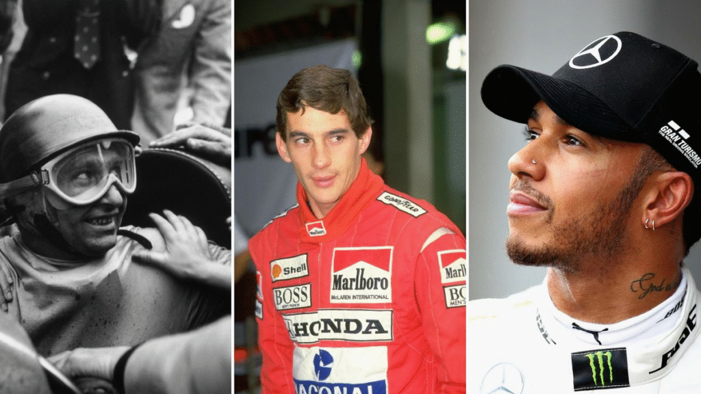 [Juan Manuel] Fangio, [Ayrton] Senna y Lewis [Hamilton]. Estos son los pilotos que más admiro, los pilotos con los que crecí y los que fueron mis héroes desde que era muy, muy joven. Solo escuchar todas las historias que tienen en el deporte, en diferentes momentos y épocas… Creo que escuchar esa diferencia entre cómo solían conducir y eran los mejores en cada momento… Hermosas historias, estoy seguro, y un buen poco de historia del deporte.