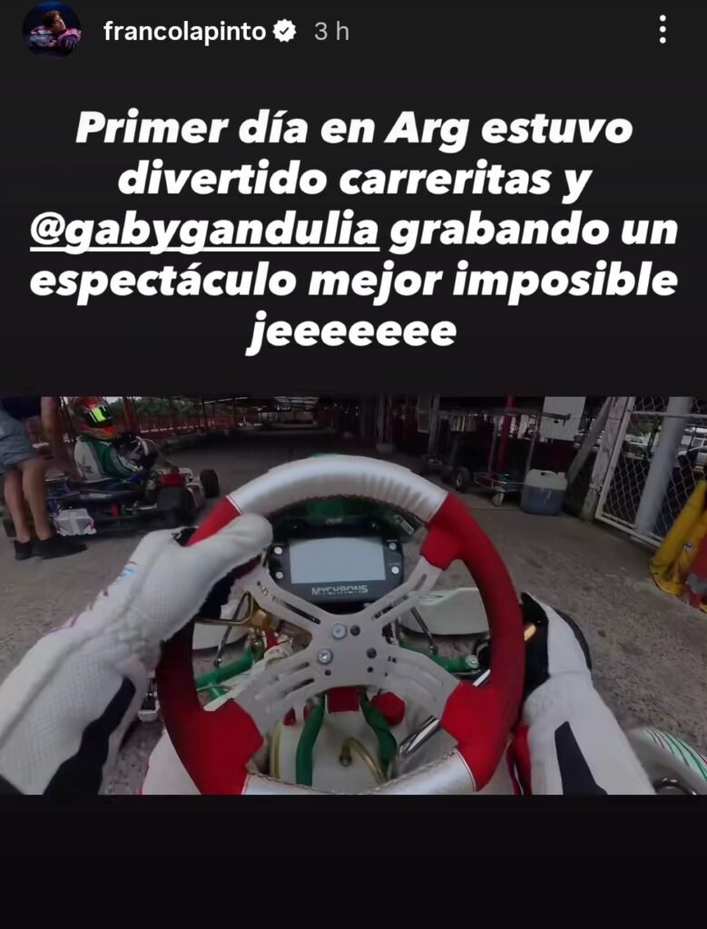 “Primer día en Argentina, estuvo divertido. Carreritas y Gaby Gandulia grabando un espectáculo. Mejor imposible, je”, fue lo primero que dijo el pilarense.