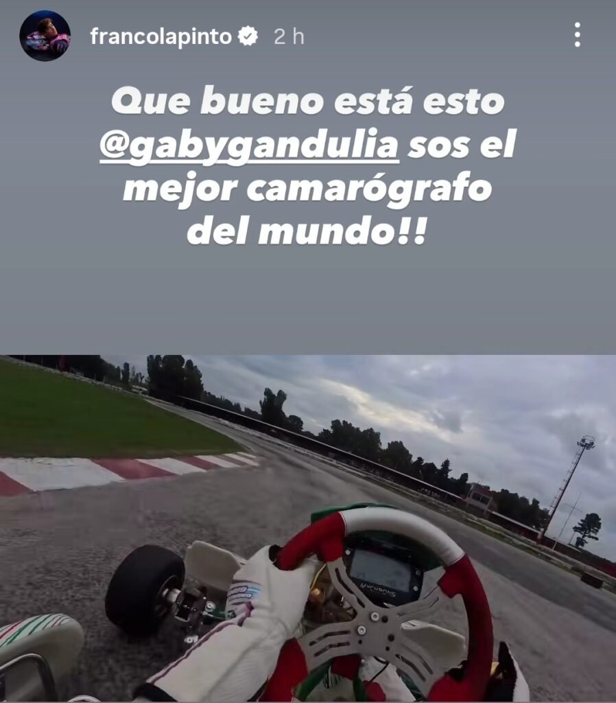Luego, con algo de picardía, compartió un video de la pelea y definió a su amigo como el “mejor camarógrafo del mundo”. Claro, lo siguió desde atrás y grabó de cerca al piloto de Fórmula 1, cuyo casco decía su nombre y llevaba una bandera argentina.