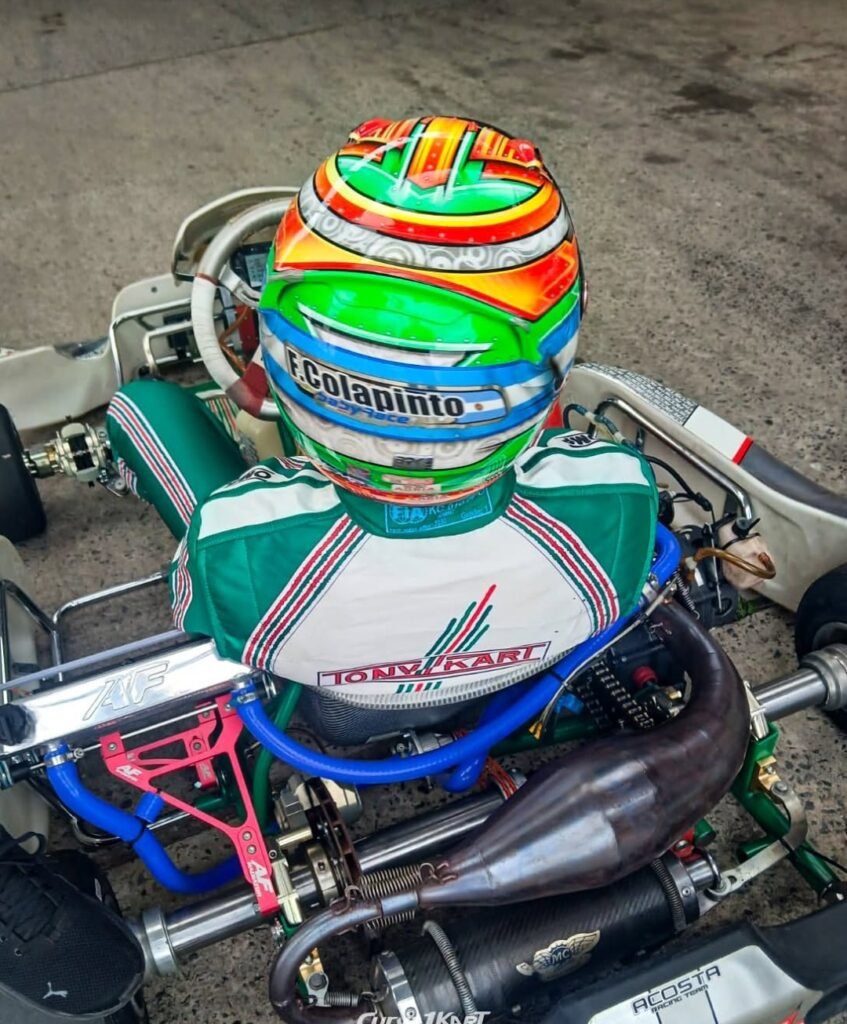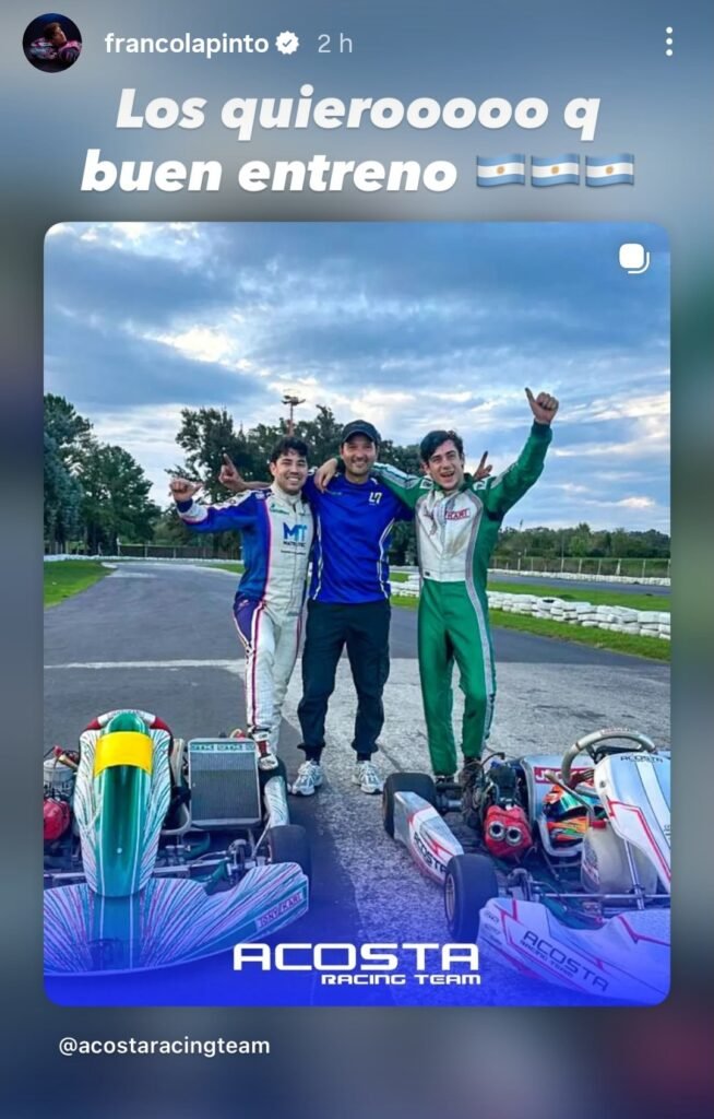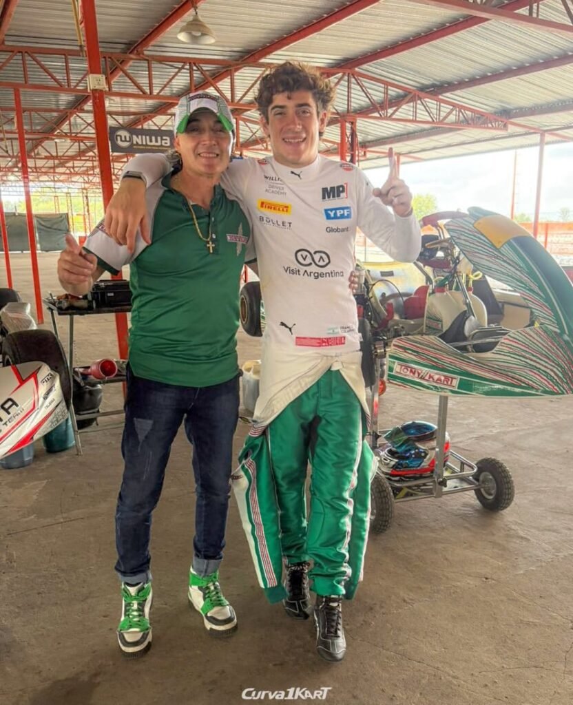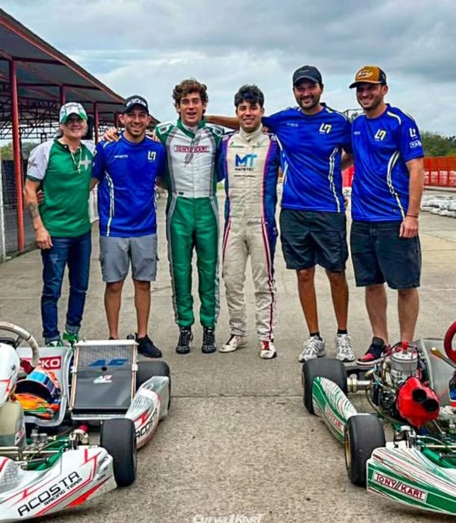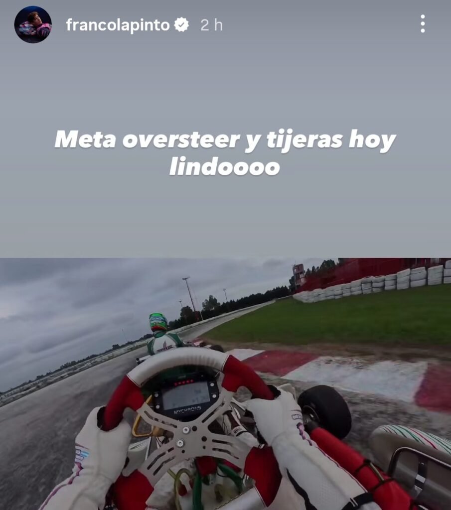 No un Fórmula 1, como sí hará en la exhibición -solo que uno del 2012 con motor V8-, sino un karting KZ, con transmisión manual, junto a uno de los equipos de su infancia (Acosta Racing Team). Después de que se conocieran las fotos, aparecieron los videos de su primera carrera en el país.