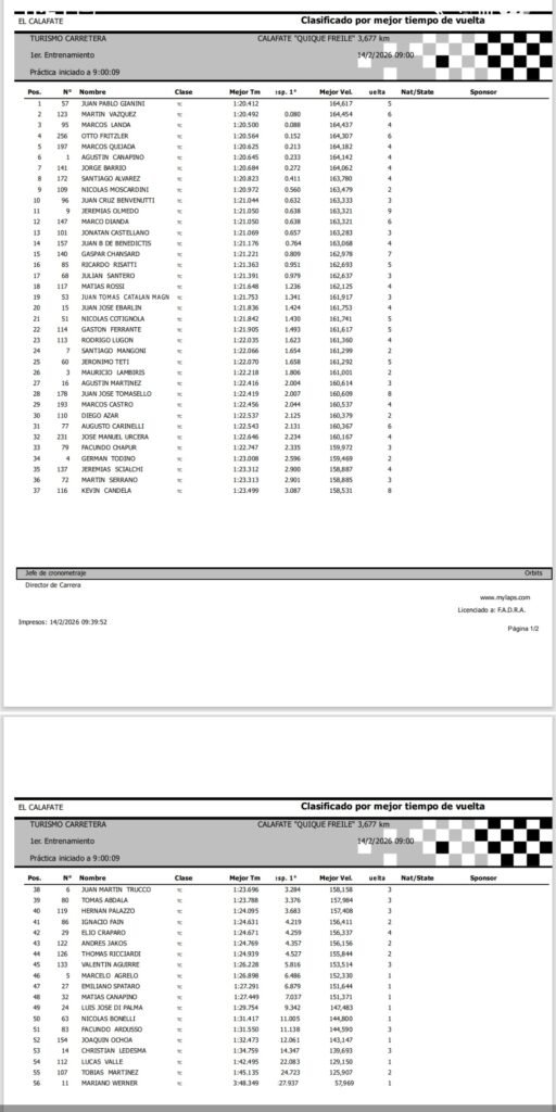 Juan Pablo Gianini se quedó con el primer entrenamiento de Turismo Carretera disputado en el autódromo de El Calafate.