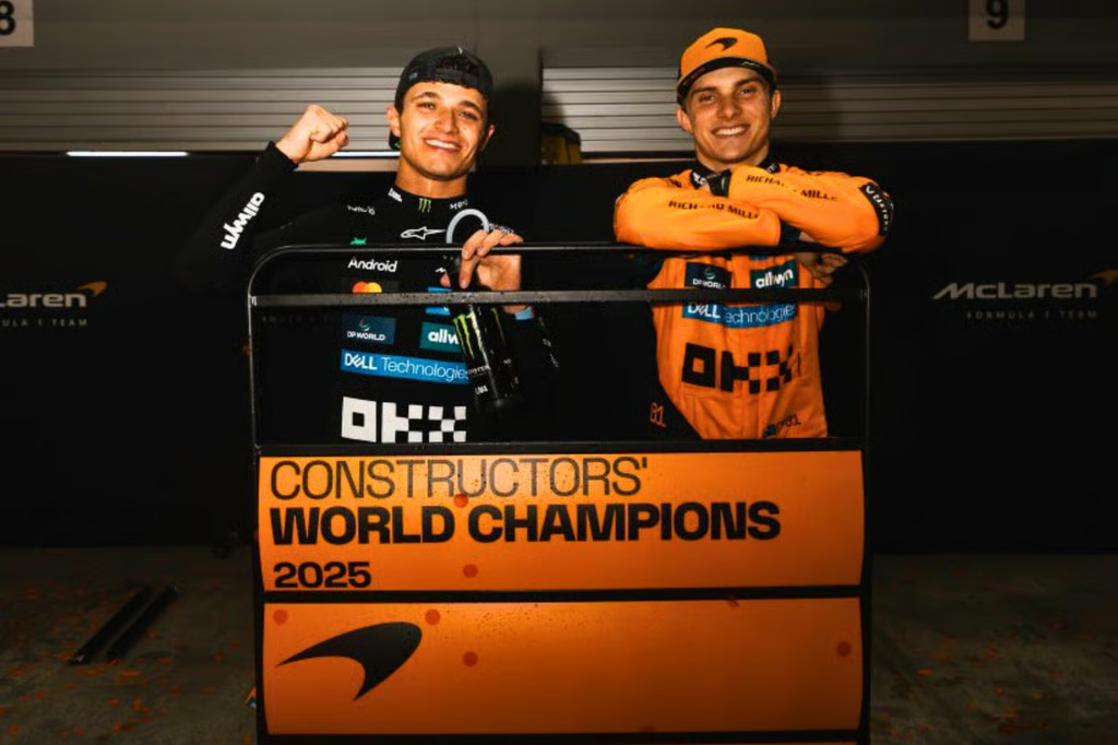 La escudería británica aseguró el primer lugar entre los equipos participantes en el Mundial 2025 este domingo en Singapur, a falta de seis competencias en el certamen, gracias al tercer lugar de Lando Norris y el cuarto de Oscar Piastri.
