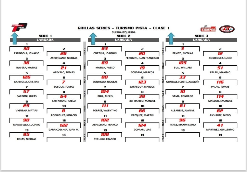 Con estos resultados, Espíndola largará adelante en la primera serie junto a Astorgano, Cortina hará lo propio con Perugini en la segunda y Benito saldrá junto a Rodríguez en la tercera. Las baterías se pondrán en marcha a las 12:45hs, 13:10hs y 13:35hs.