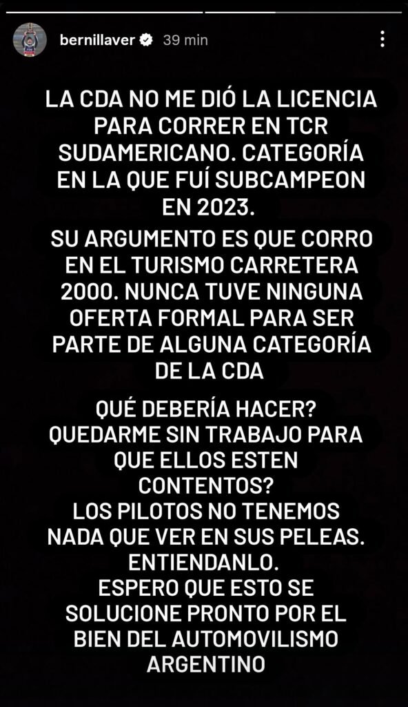 El conflicto ACTC-CDA por el tema licencias vuelve a estar en el centro de la escena debido a la fecha especial del TCR South America en Interlagos. El mendocino se refirió a las decisiones políticas y a los permisos denegados para Llaver y Ardusso.