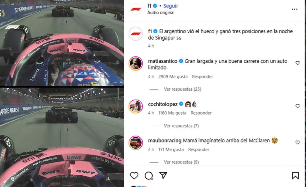 No es la primera vez que la Fórmula 1 comparte en sus redes sociales una acción del joven de Pilar, que debutó esta temporada en la categoría máxima y se convirtió en uno de los favoritos del público latinoamericano. La publicación fue acompañada por miles de comentarios de fanáticos que celebraron su audacia y elogiaron su capacidad para aprovechar los espacios en la largada.
