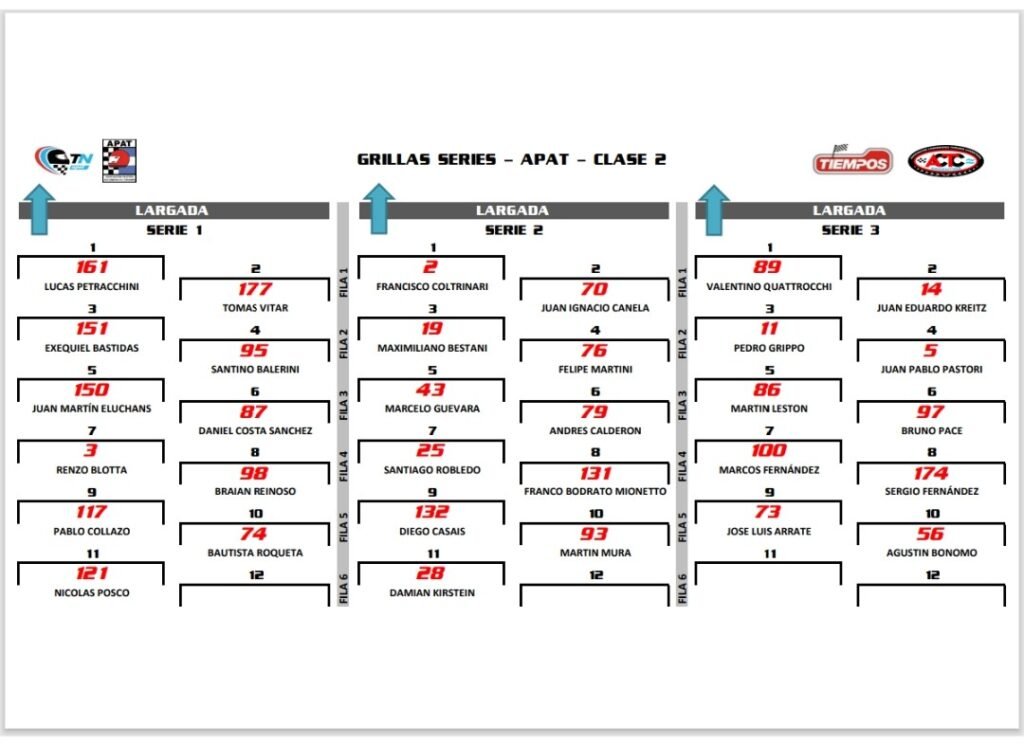 A partir de las 10:00 horas del día de mañana, se disputarán tres series clasificatorias en las cuales largarán en la primera posición los pilotos Lucas Petracchini, Francisco Coltrinari y Valentino Quattrocchi.