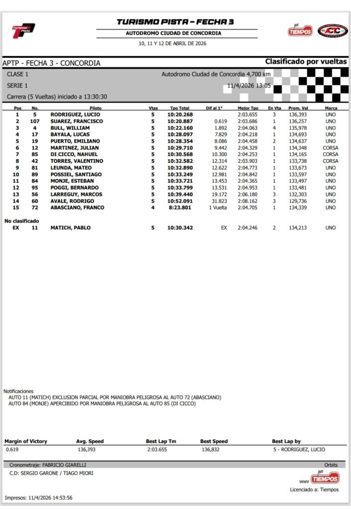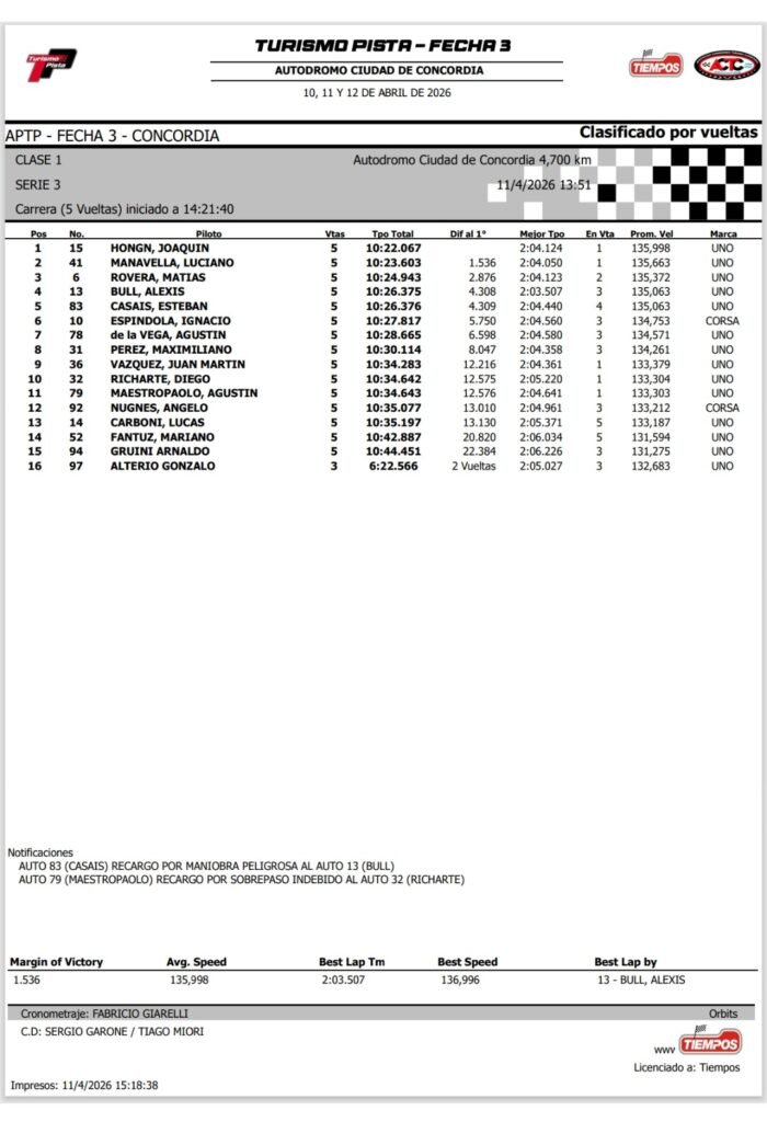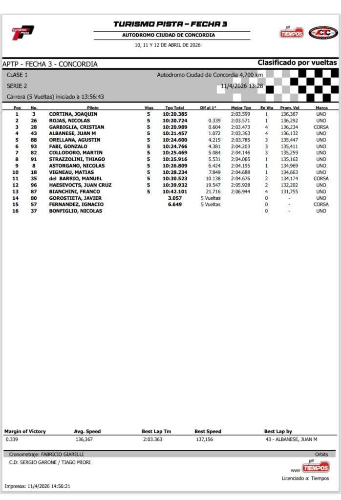 Tags: CONCORDIARESULTADOSSERIESTURISMO PISTA