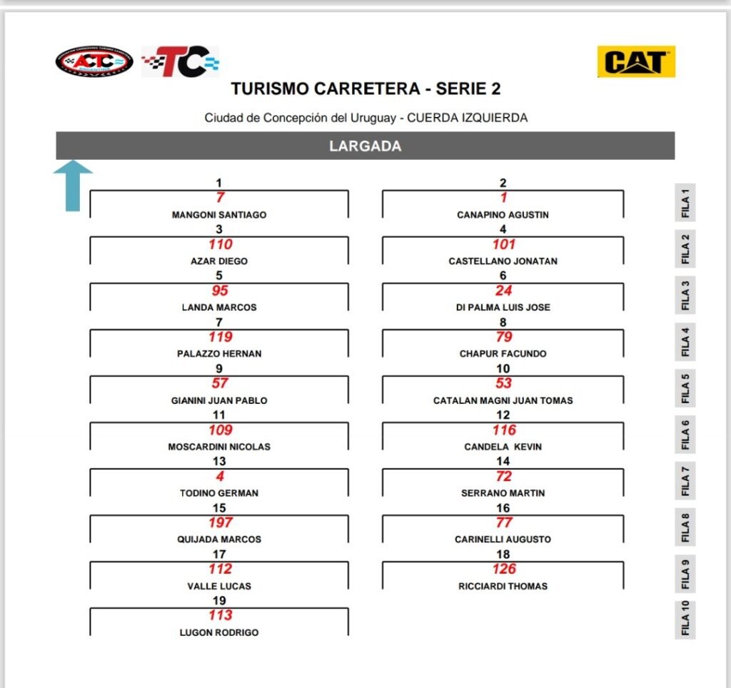 Segundo finalizó a 67 milésimas el uruguayo Mauricio Lambiris, con el Ford Mustang del Gurí Martínez Competición, y tercero se ubicó Santiago Mangoni con el Chevrolet Camaro del Canning Motorsports, a 73 milésimas. Cuarto terminó el local Nicolás Bonelli con el Ford Mustang de los Hermanos Álvarez. Estos 3 comandarán sus respectivas series de mañana. Quinto terminó Otto Fritzler; sexto Agustín Canapino; séptimo Valentín Aguirre; octavo Diego Azar; noveno Jeremías Scialchi; y décimo Julían Santero.