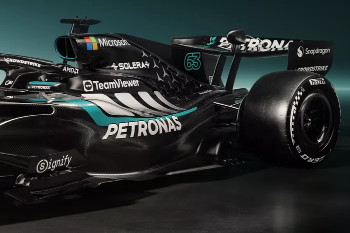 Los renders difundidos hasta ahora revelan un monoplaza que mantiene su identidad específica, con el negro dominante en la vista lateral, que se vuelve plateado en la toma superior y con los habituales remates en verde aguamarina de Petronas, que tienden a dividir las dos coloraciones.