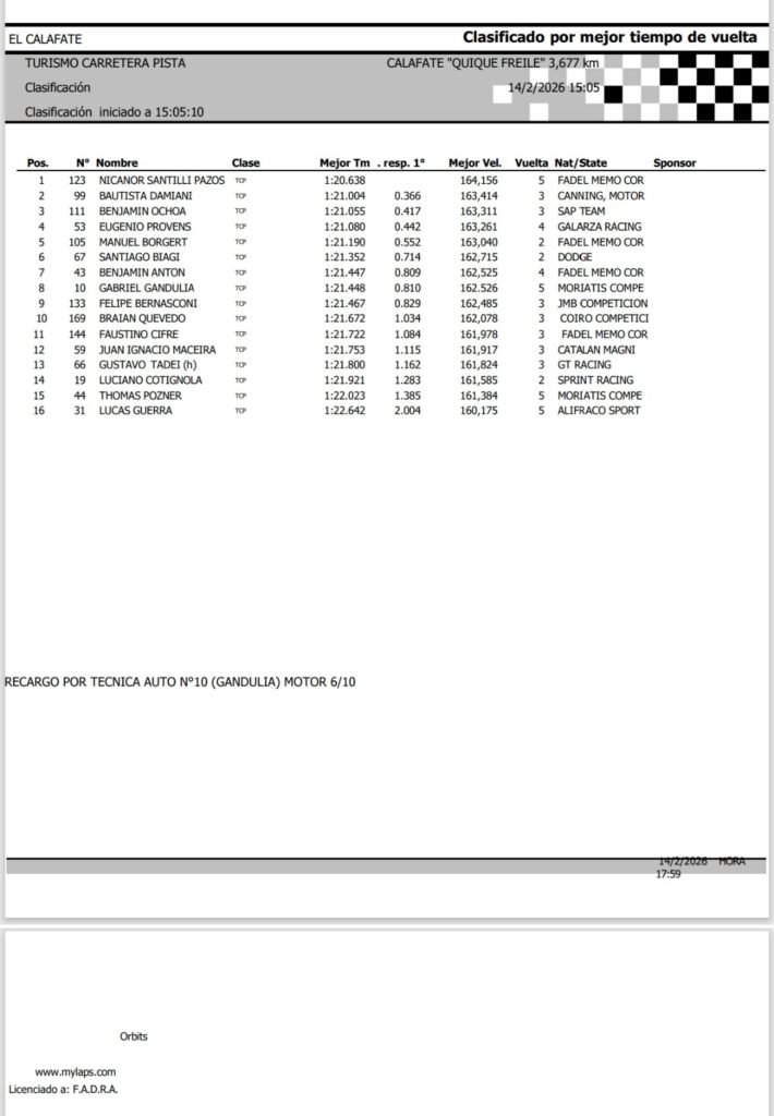 Luego de los tres mejores terminaron 4° Benjamín Ochoa, 5° Provens, que ascendió del TC Mouras, 6° Borgert, 7° Biagi, 8° Antón, 9° Bernasconi y 10° Braian Quevedo.