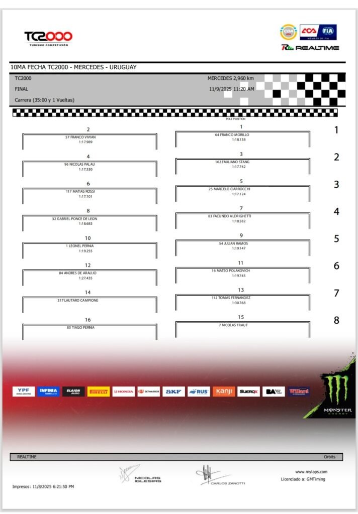 La actividad para el TC2000 continuará a las 11.20 hs. con la final de 35 minutos más 1 vuelta que tendrá a Franco Morillo con el Chevrolet Cruze #64 del Proracing largando desde el primer cajón d la grilla. Todas las alternativas las podrán seguir por la señal de El Trece, TyC Sports y TyC Sport Play junto al equipo periodístico de Carburando.