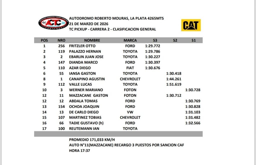 Con la sesión clasificatoria terminada, Tomás Pellandino hizo la pole, volvió a reafirmar porque hizo el uno en el segundo entrenamiento y mañana domingo largará primero con la Ford Ranger del SAP Team en el Autódromo Roberto Mouras, para definir la segunda fecha de las TC Pista Pick Up. Segundo quedó Nicanor Santilli Pazos con la Foton del Fadel Memo Corse y tercero fue Juan Pablo Guiffrey con la Ford del SAP.