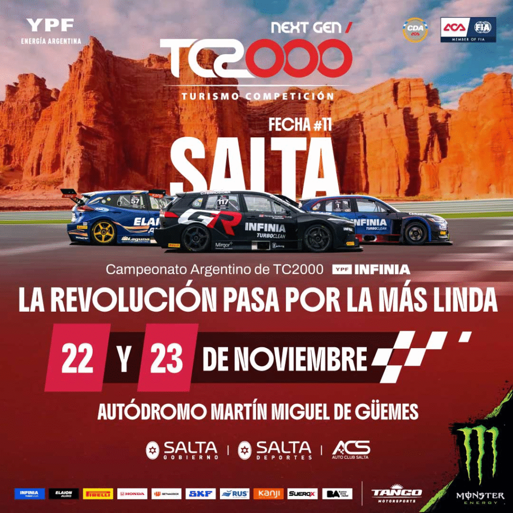 Así lo anunció Gustavo Sáenz (Gobernador de Salta): “Después de muchos años, el automovilismo nacional regresa al Autódromo ‘Martín Miguel de Güemes’. El 22 y 23 de noviembre seremos sede de la 11ª fecha del 46º Campeonato Argentino de TC2000 YPF INFINIA. No es solo deporte: es impacto social y económico real para nuestra provincia. Significa empleo y trabajo para la hotelería, la gastronomía, el transporte y los proveedores locales; promoción turística de nuestros paisajes y cultura; oportunidades para emprendedores y un fin de semana que moviliza a miles de visitantes de todo el país. En Salta, el deporte es política de Estado. Los esperamos en el Autódromo Güemes’.