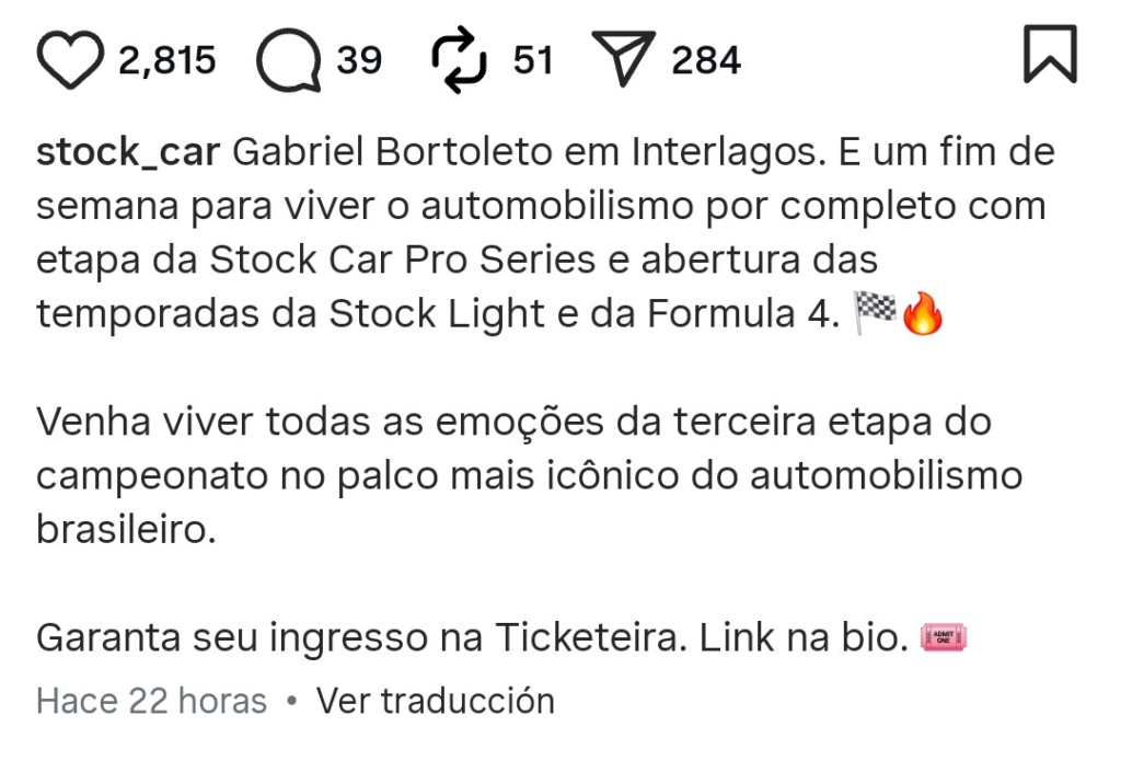 Si bien la publicación no aclara en ningún momento que el piloto de Audi F1 Team vaya a competir en el Stock Car, muchos interpretaron la noticia como una posible participación en pista. Esto se debe a que, semanas atrás y en el marco del Día de los Inocentes, la categoría había anunciado —en tono de broma— que el brasileño correría en la divisional, algo que luego fue desmentido.